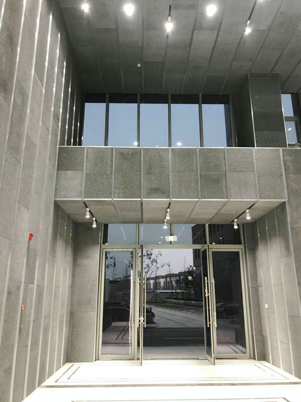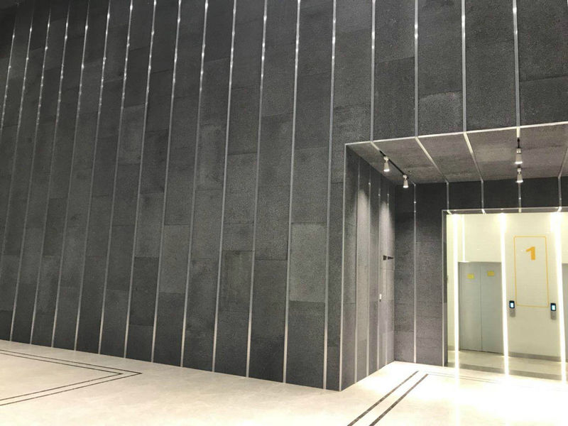闭孔泡沫铝板经过打孔处理后制成高效吸声板(Φ2mm孔,打孔率1~3%),具有优良的吸声性能,吸声率可以达到60%~90%。由于这种材料表面没有平面,具有优良的表面漫反射吸声功能、同时又具有穿孔的亥姆霍兹共振吸声器吸声功能,保证具有较高吸声率。此外,在潮湿环境下普通吸声材料吸收水分后膨胀,吸声系数大大降低,而泡沫铝材料不吸收水分,其吸声率不降低。